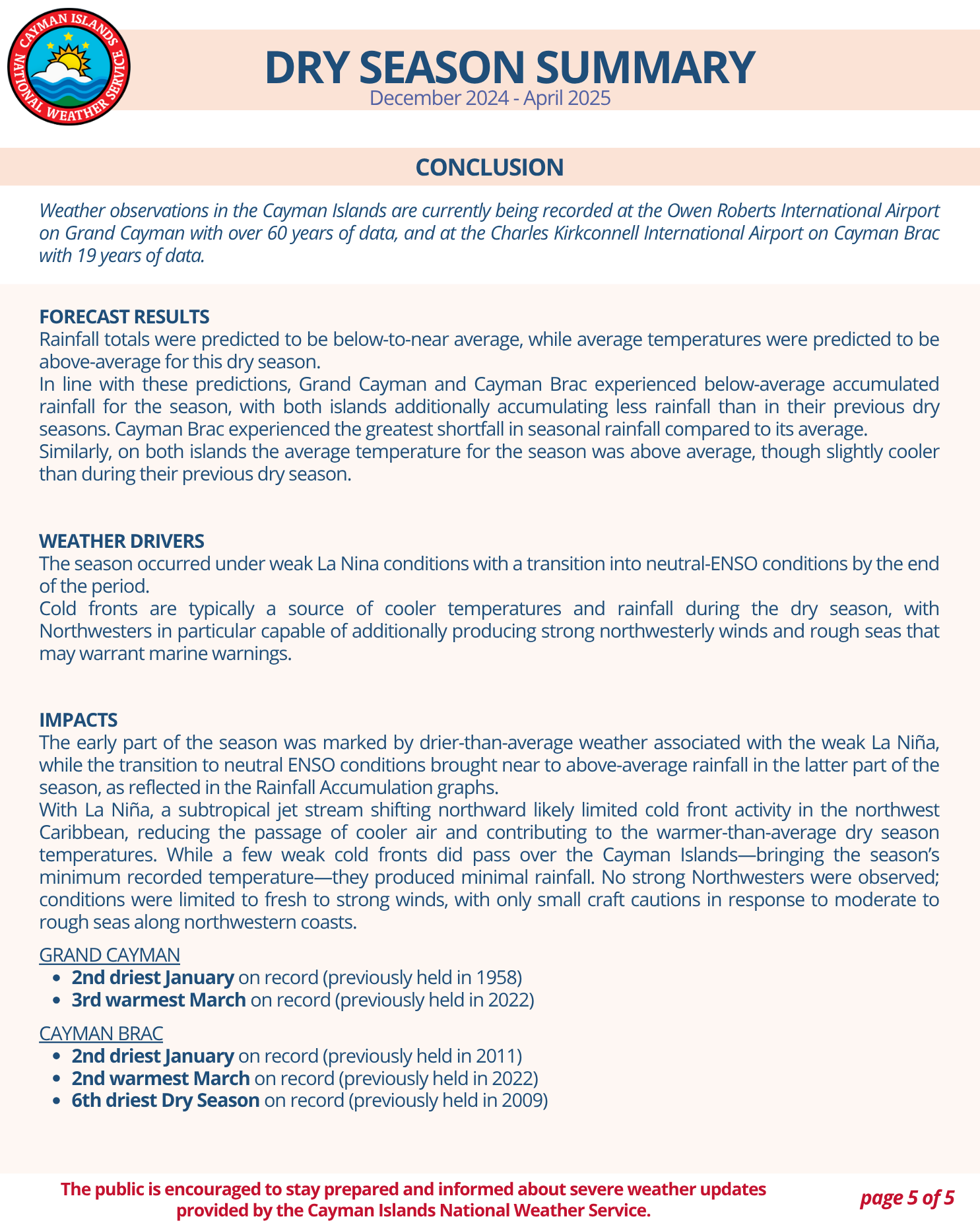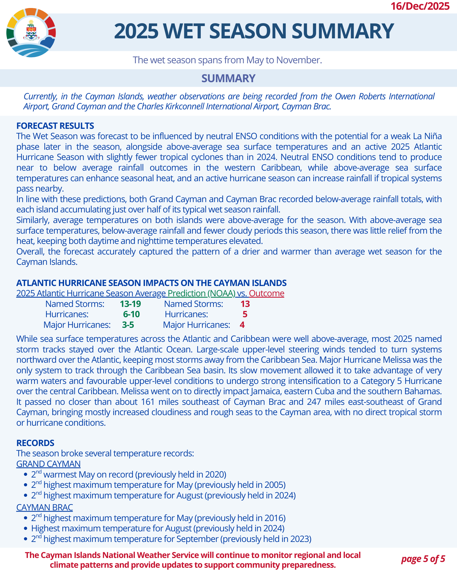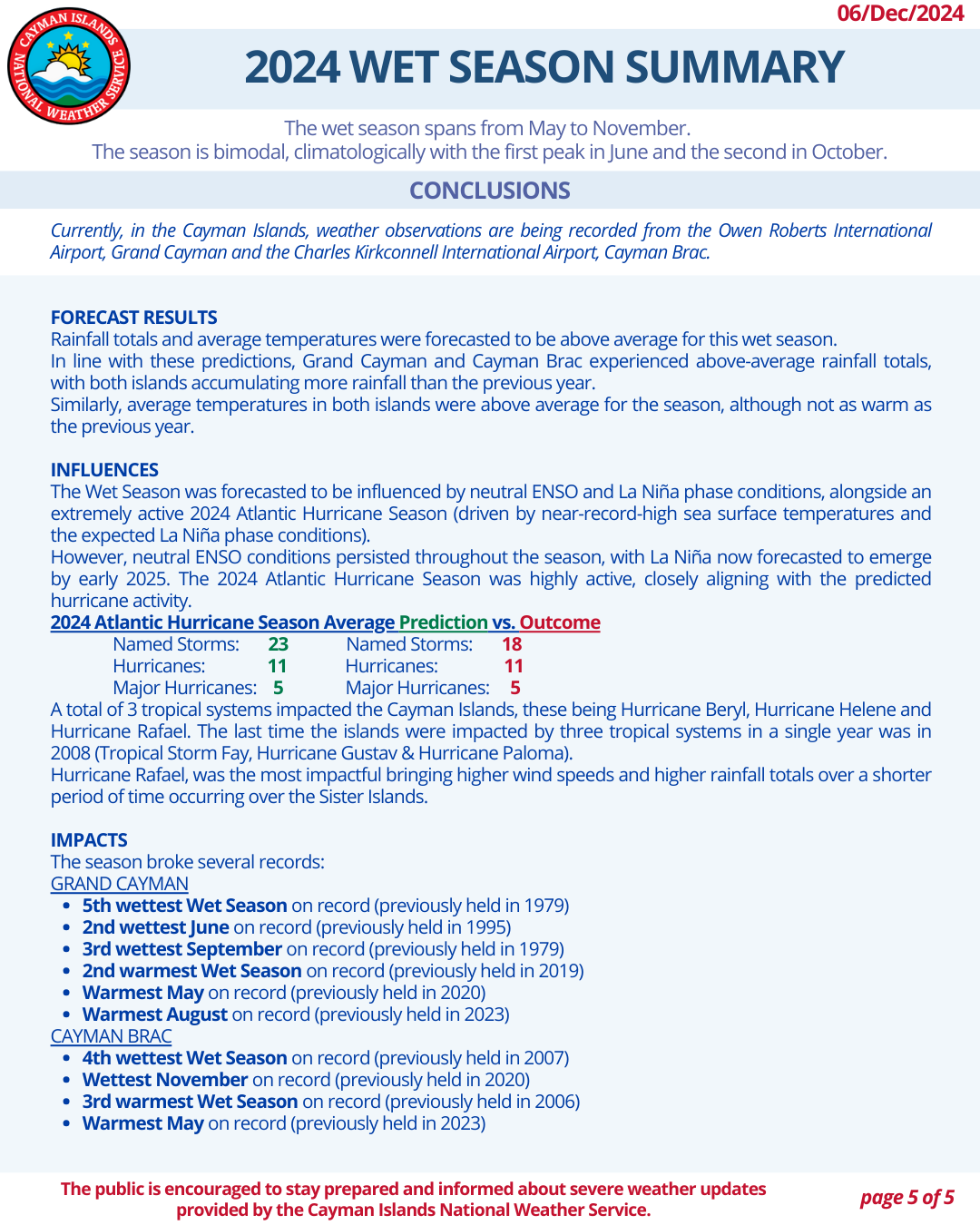 Wet and Dry Season Summaries